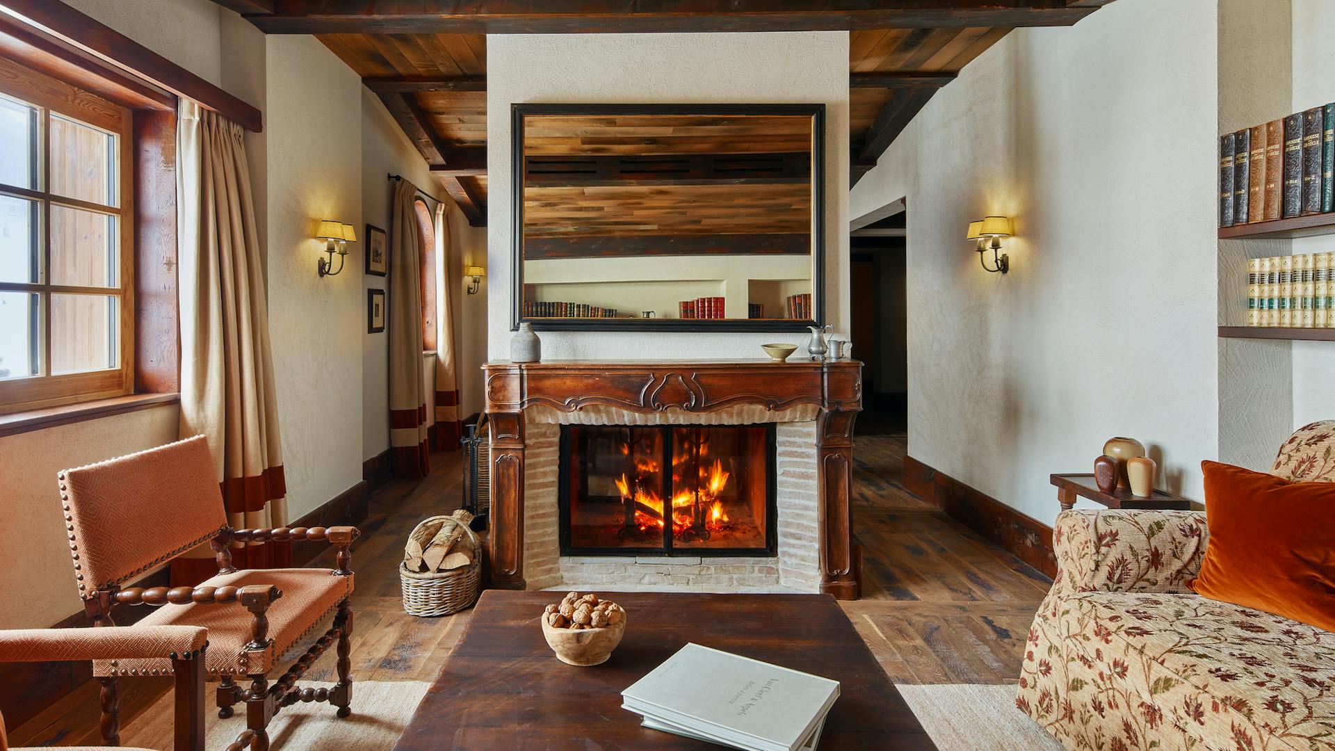 The beautiful fireplace with wooden detailing is the centre of the room, making it feel warm and friendly. In the evening, it is a pleasure to gather around it as the flames crackle, sharing what you have been up to on the slopes during the day.